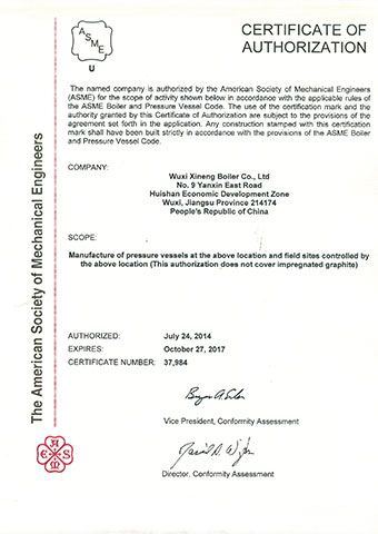 無錫錫能鍋爐有限公司位于江蘇省無錫市美麗的太湖之濱。公司成立于上世紀九十年代初 , 是A級鍋爐、固定式壓力容器,中、低壓容器(D)專業設計制造廠家。同時還持有鍋爐安裝改造維修A級、ASME(美國機械師工程協會) “S” 、 “ U” 鋼印產品資質,并通過ISO9001質量管理體系、ISO14001環境管理體系、ISO45001職業健康安全管理體系認證。