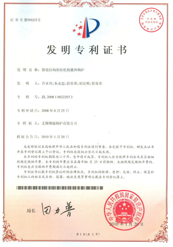 • 發(fā)明專利200810022207.3散裝結(jié)構(gòu)的有機(jī)熱載體鍋爐