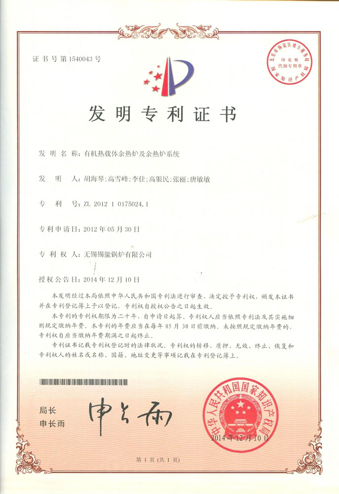 • 發明專利201210175024.1有機熱載體余熱爐及余熱爐系統