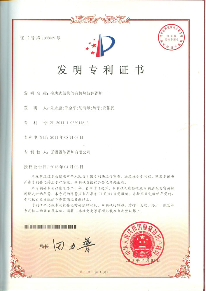 • 發明專利201110220148.2模塊式結構的有機熱載體鍋爐