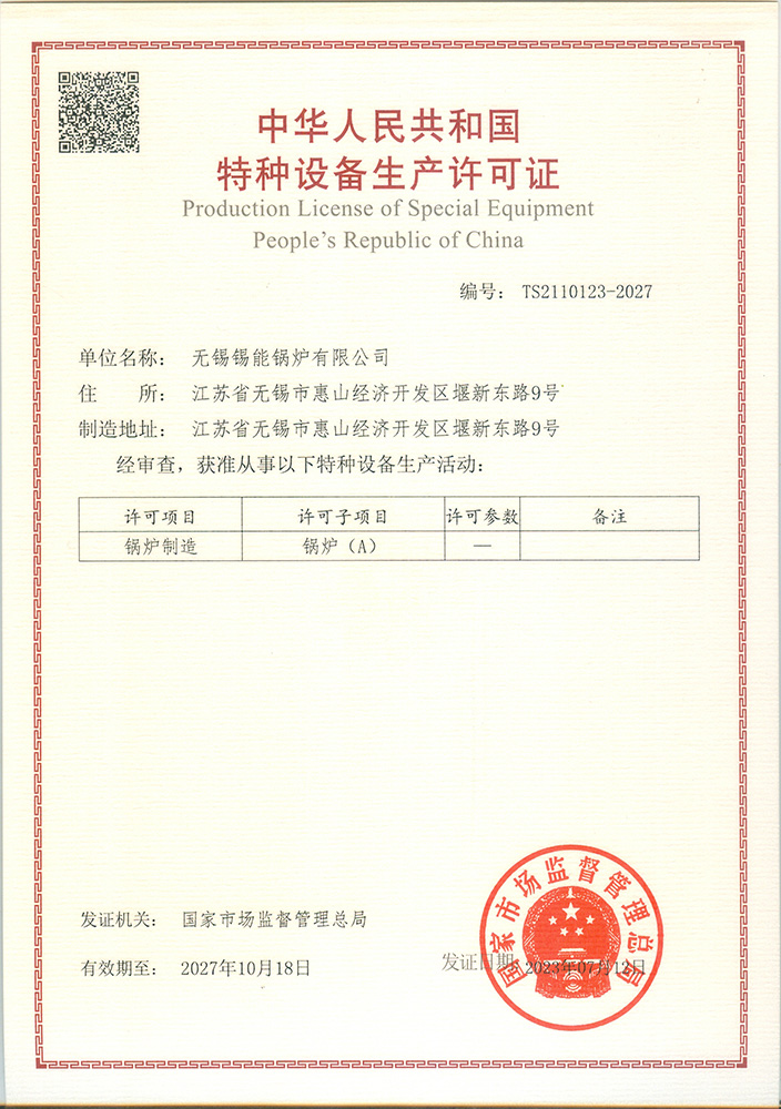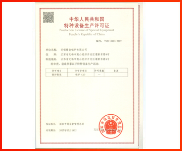 • A級鍋爐制造許可證